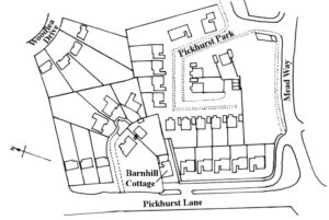 Barnhill was built in 1898 on land which had been part of Lower Pickhurst Green Farm. The main farm buildings were in Barnfield and adjacent to the road now called Pickhurst Lane. The cottages had been lived in from at least the beginning of the 18th century.