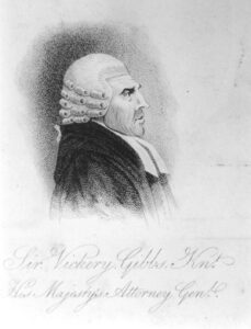 Vicary Gibbs was called to the bar in 1780 and joined the Western Circuit in 1783. The following year he married Frances Cerjat Kenneth Mackenzie whose father was Major William Mackenzie.  Their only daughter Maria was born in November 1785. He steadily rose in the legal profession and Hayes became a rural retreat away from his London property.  He made his name as a barrister with the defence of a number of high political cases. There is no doubt about his great skill as a lawyer but his sharp tone earned him the nickname of Vinegar Gibbs, although some of the family’s friends referred to him as ‘Gibberish Vicks’.